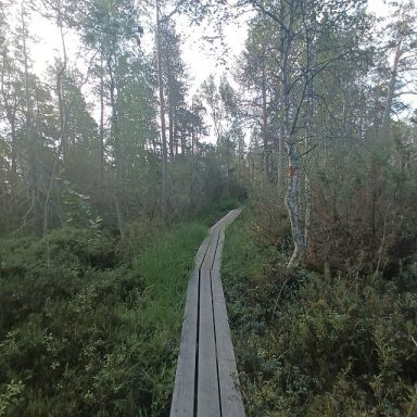 Immerhin habe ich bei dem Hügel hoch und Hügel runter meine erste Elchbegegnung gehabt. Zuerst habe ich das braun glänzende Etwas für ein Pferd gehalten ( aber war mit Gedanken gerade auf dem Stüffel 😁). Der Elch war mindestens so verdutzt mich zu sehen, wie ich ihn. So schauten wir uns einige Momente intensiv in die Augen, bis er leichtfüßig durchs Moor verschwand. Was können diese riesigen Tiere elegant laufen.