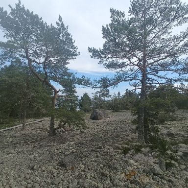 Auf jeden Fall bot dieser Küstenabschnitt viele malerische alte Fischerdörfer (alle konnte ich leider nicht abradeln). Die zumeist falunroten Häuser wirkten wie "dahingetupft". Viele Grabhügel aus der Bronzezeit gab es zu sehen und mit eins der schönsten Geröllfelder Schwedens. Dieses erstreckte sich bis unmittelbar an den Strand. Der Fahrradweg war identisch mit dem "Jungfrukustvägen". Gut mit dem Womo zu befahren, falls ihr Lust bekommt.