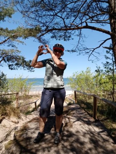 Losgefahren nach einem wunderbaren Tag mit der Familie, die mich an meinen Startpunkt nach Stralsund gebracht hat, bin ich von der dortigen DJH gestartet. Habe als Andenken auch gleich meine Bluse dort gelassen.