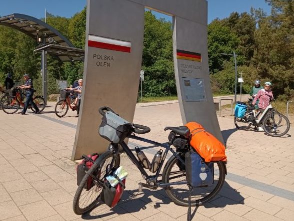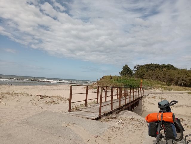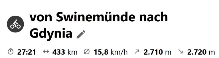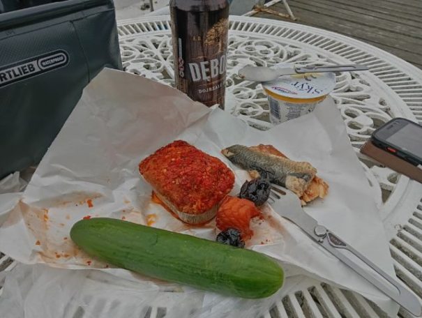 Inzwischen bin ich 140 km vor Danzig. Sitze im Windschatten in der Sonne und lass mich durchwärmen. Die Temperaturen sind dann doch etwas frisch. Hat den Vorteil, dass die Satteltaschen leerer sind, da ich alles anhabe.