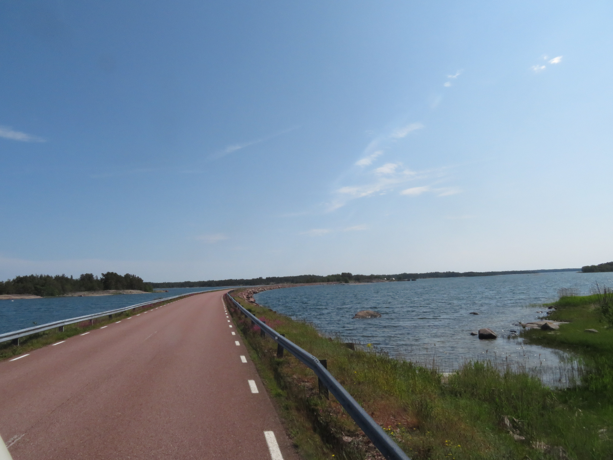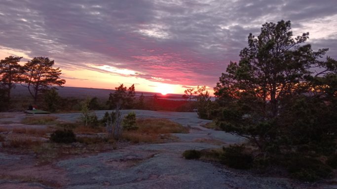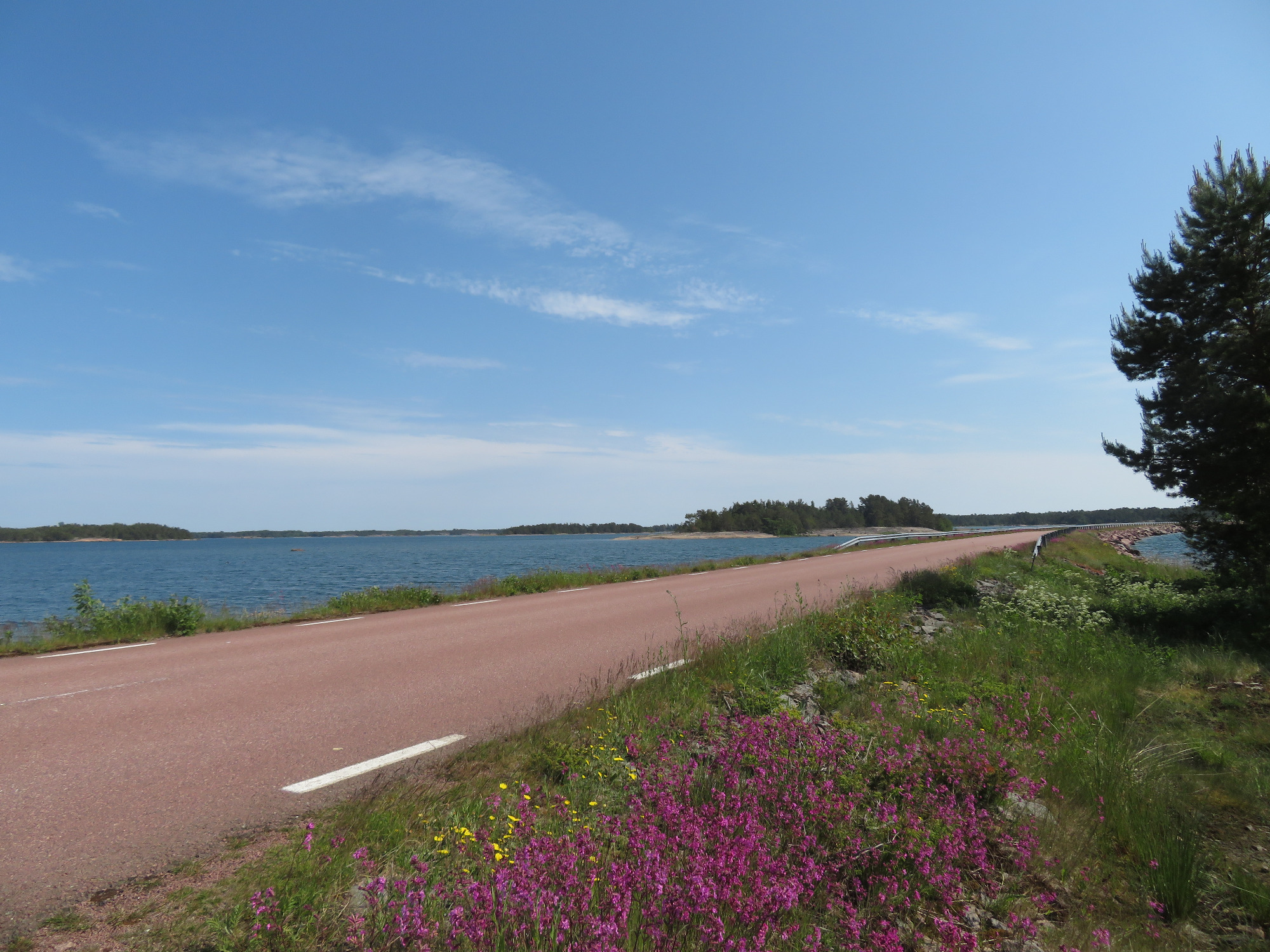 Die Inseln und Schären haben mich begeistert. Es war wie Skandinavien auf kleinem Raum: Schären, das Rauschen des Meeres, nach jeder Kurve ein neuer Blick auf die See, Moore mit seltenen Orchideen, Waldwiesen, Obstplantagen, rote Granitfelsen in sämtlichen Formationen, bizarre Ufervegetation, vom Wind gebeugte und kleinghaltene mossbewachsene Kiefern, die mit einem winzigen Haufen Humus auf dem Felsen auskommen, auf denen Flechten und Moos in den unterschiedlichsten Farbtönen wachsen. Was für eine grandiose Landschaft!! Und dann diese kitschigen Sonnenuntergänge...