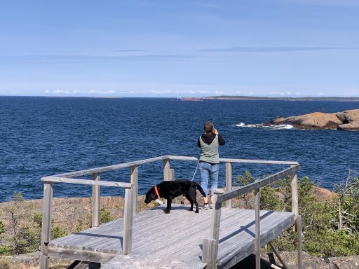 Gunnar, Lara und Balou kommen aus Schweden mit der Fähre von Kapellshär.