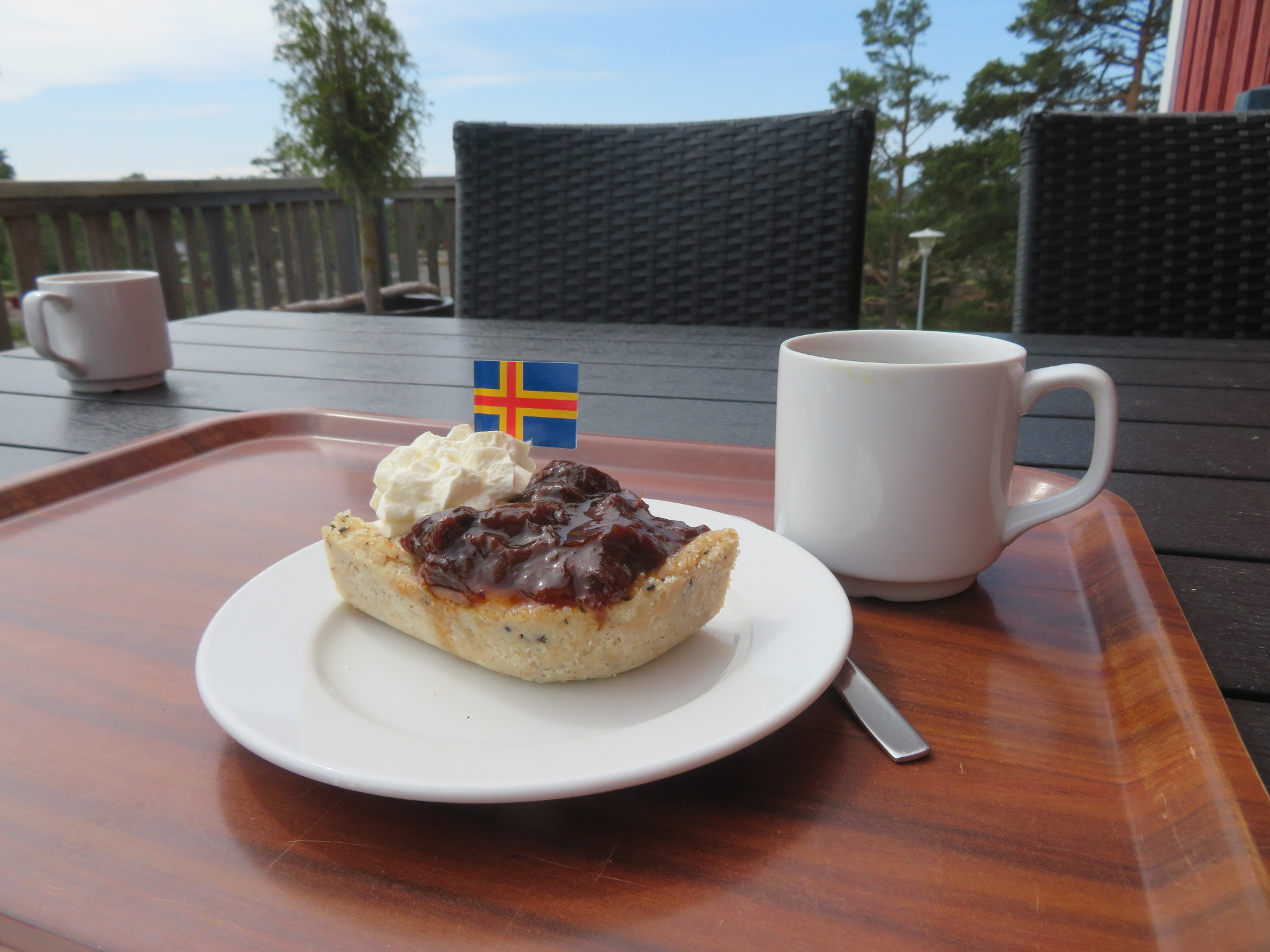 Aland begrüßt mich mit knackigen 8 Grad, Wind und Regen. Und das um 4:15 Uhr in der Frühe!! Also ert einmal in der Warte halle des Fähranlegers aufwärmen und ein bischen dösen, bis der erste Bäcker aufmacht. Dort einmal Kaffee bezahlt,danah kann man sich so oft nachnehmen wie man möchte.