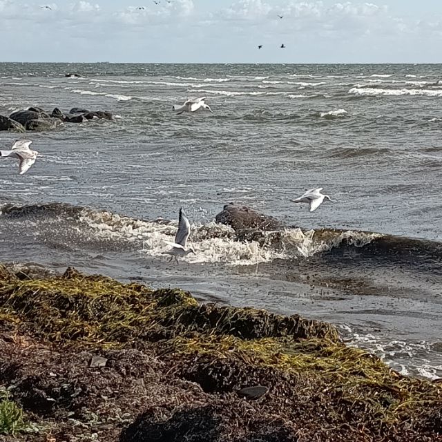 Zusammen mit Hannah, wir begegneten uns schon vor zwei Tagen auf dem Campingplatz, ging's einen Tag verspätet- Ausfall wegen zu starkem Wind - auf die Fähre. Sobald wir aus der Landabdeckung heraus waren, habe ich mich lieber auf den Horizont fokussiert. Mein lieber Scholli, dass die Fähre bei so wenig Wind schon so schlingert.😨
