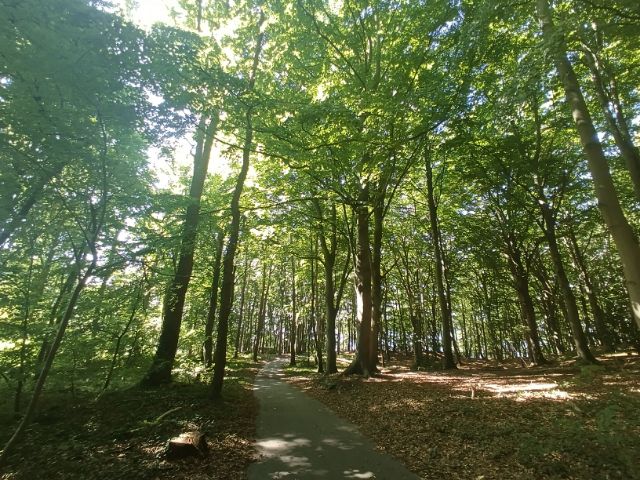 Eigentlich hatte ich geplant dem Eurovelo 10 der Küste entlang zu folgen, angesichts der bescheidenden Wetterlage habe ich den direkten Weg genommen. Immerhin führte dieser zum Teil durch den Nationalpark Jasmund mit seinen Buchenwäldern und der Küstenlinie vorbei.